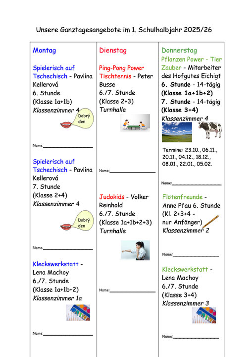 Darüber hinaus ist unsere enge Zusammenarbeit mit den beiden Horteinrichtungen in Eichigt und Triebel in einer Kooperationsvereinbarung geregelt.
